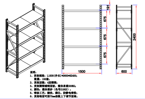 貨架層數(shù):4層橫梁