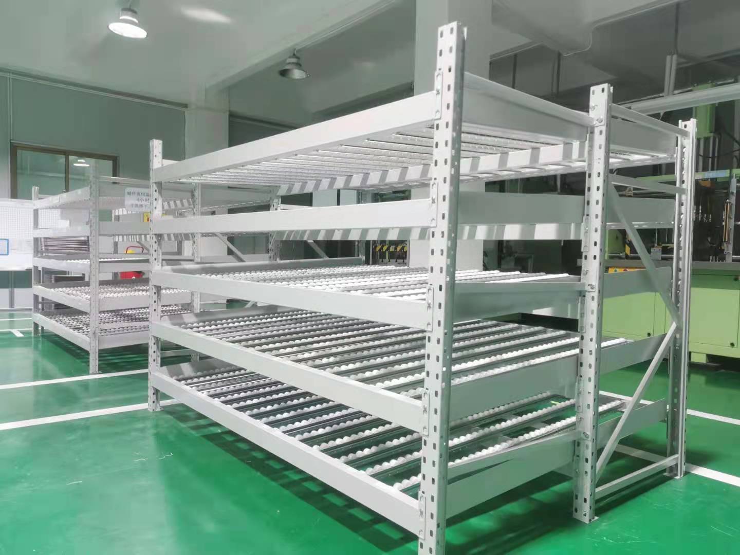 流利式貨架廣泛應用于制造業,商業,配送中心,裝配車間以及出貨頻率較高的倉庫流利式貨架:采用輥輪鋁合金,鈑金等流利條,利用臺架自重實現先進先出,存儲方便,適用于裝配線兩側配送中心等場所。
