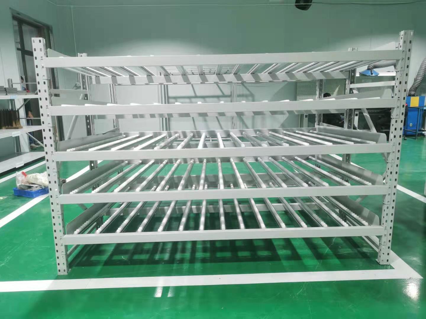 流利式貨架采用滾輪式鋁合金等流力條,利用貨物自重實現貨的先進先出。存取方便,適合于裝配線兩側,配送中心等場所。適用于大批量同類貨物的存儲,空間利用率較高,尤其適合汽配工廠使用。可配以電子標簽,實現貨物的信息化管理。