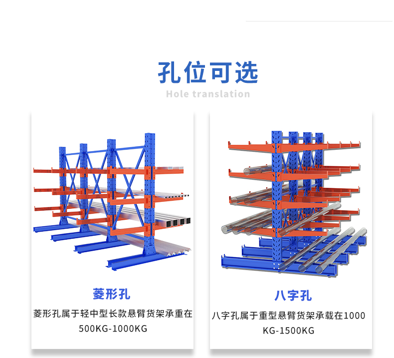 懸臂式貨架是貨架中重要的一種。適用于存放長物料、環型物料、板材、管材及不規則貨物。可以是單面或雙面,懸臂式貨架具有結構穩定,載重能力好、空間利用率高等特點。懸臂式貨架立柱多采用H型鋼或冷軋型鋼,采用方管、冷軋型鋼或H型鋼,懸臂與立柱間采用插接式或螺栓連接式,底座與立柱間采用螺栓連接式,底座采用冷軋型鋼或H型鋼。